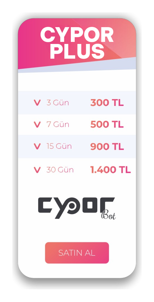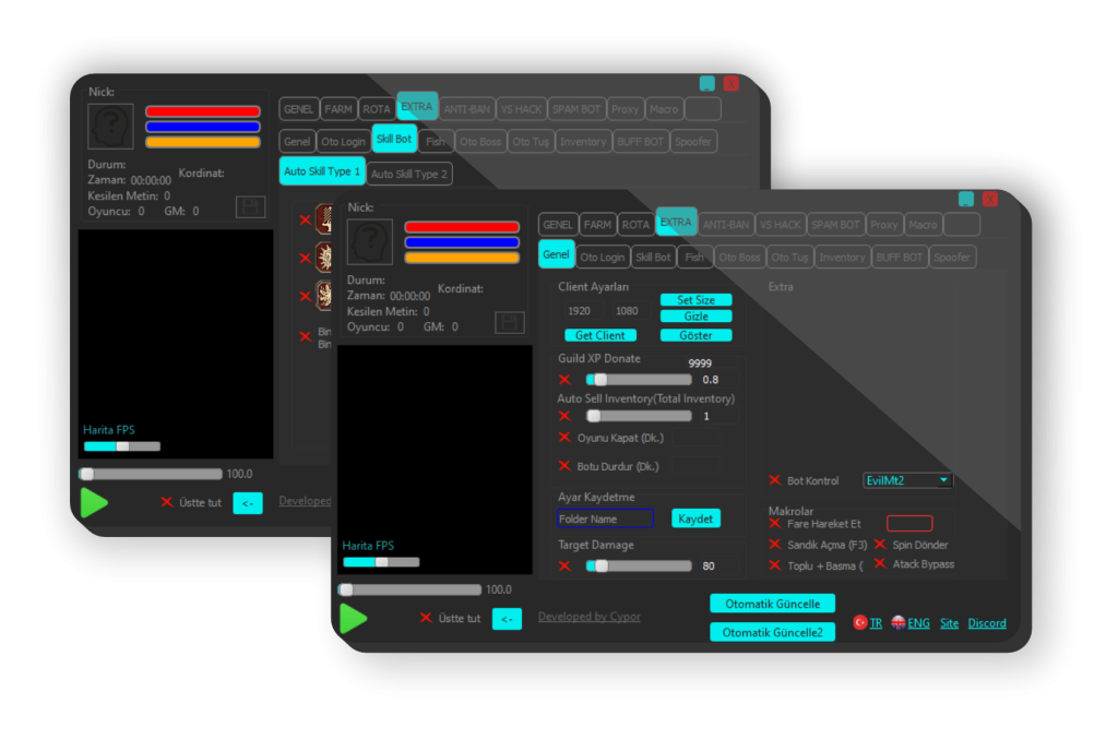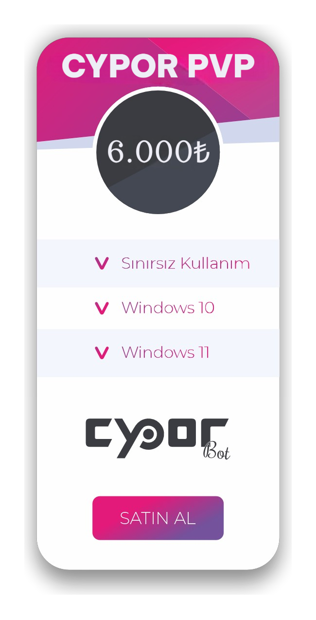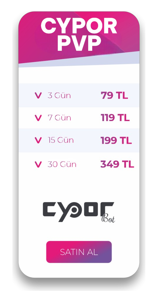 Cypor Bot siz oyunculara eşsiz bir oyun deneyimi sunar. Cypor Bot sayesinde 7/24 kesintisiz farm yapabileceksiniz.